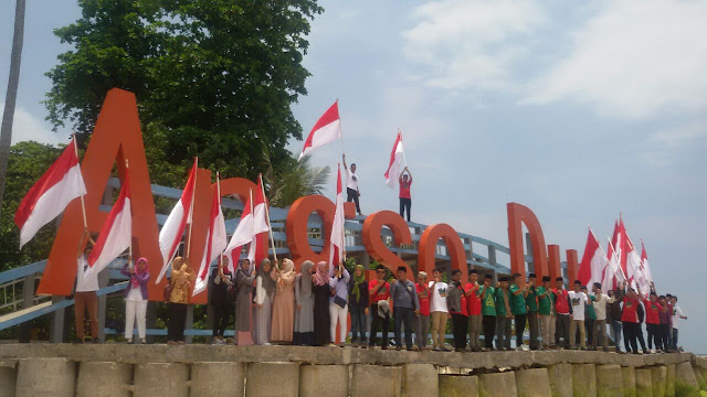 Pariaman - Peserta Kirab Satu Negeri kibarkan bendera merah putih di Pulau Angso Duo, Senin (24/9). Aksi ini merupakan salah satu rangkaian estafet Kirab GP Ansor dan Banser yang dilalukan secara estafet dari Sabang hingga ke Merauke.